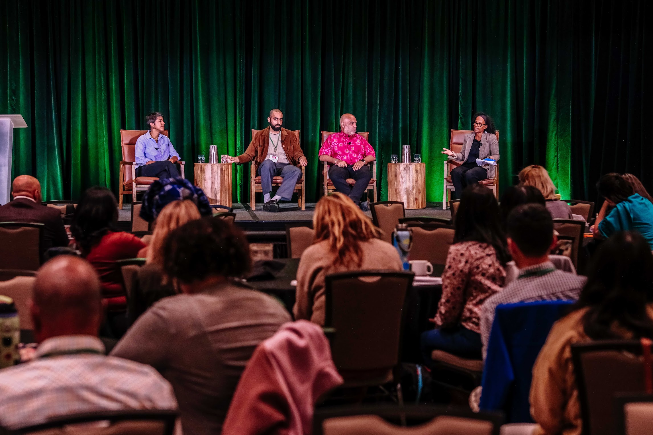 Our second plenary discussion featured Jodi Archambault, CEO of Anpo, Inc., Natalie Stites Means, Executive Director of COUP Council, Jade Begay, Co-Founder of Agency and Marian Naranjo, Founder and Director of Honor Our Pueblo Existence (HOPE). Jim Enote, CEO of the Colorado Plateau Foundation moderated the panel.